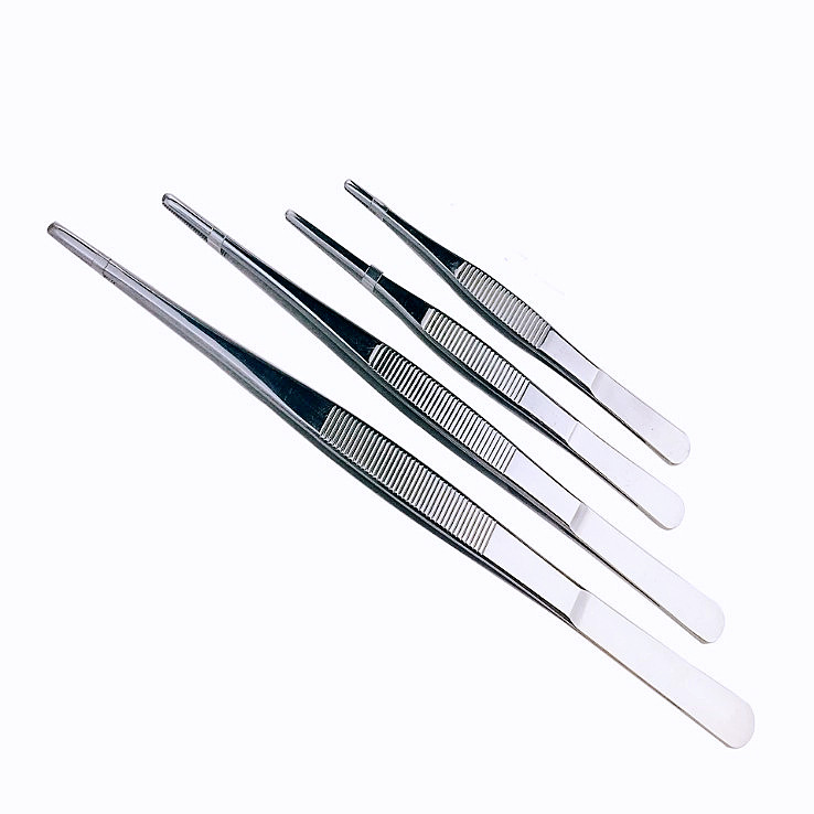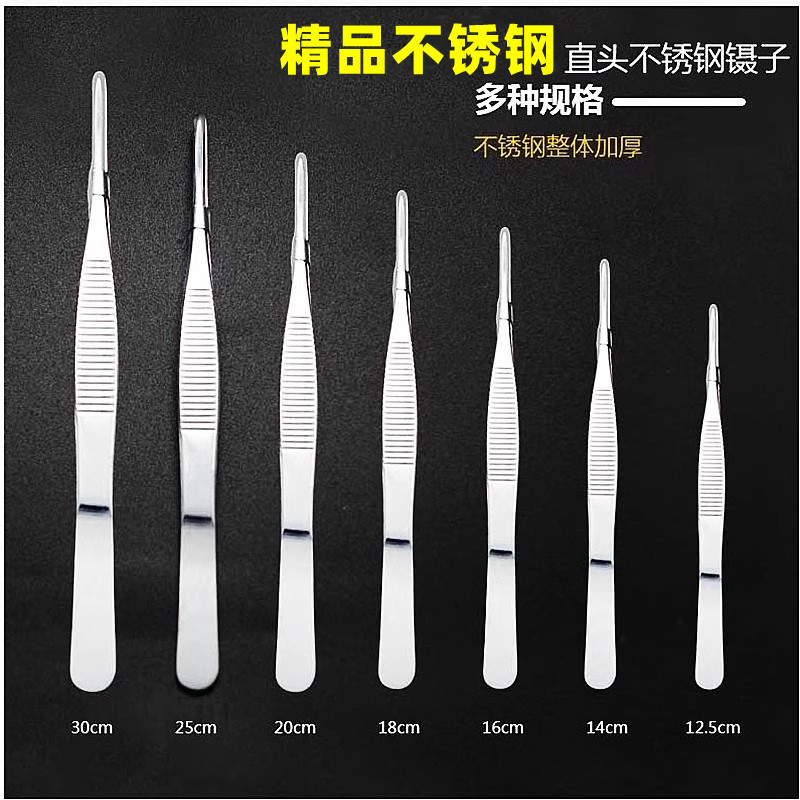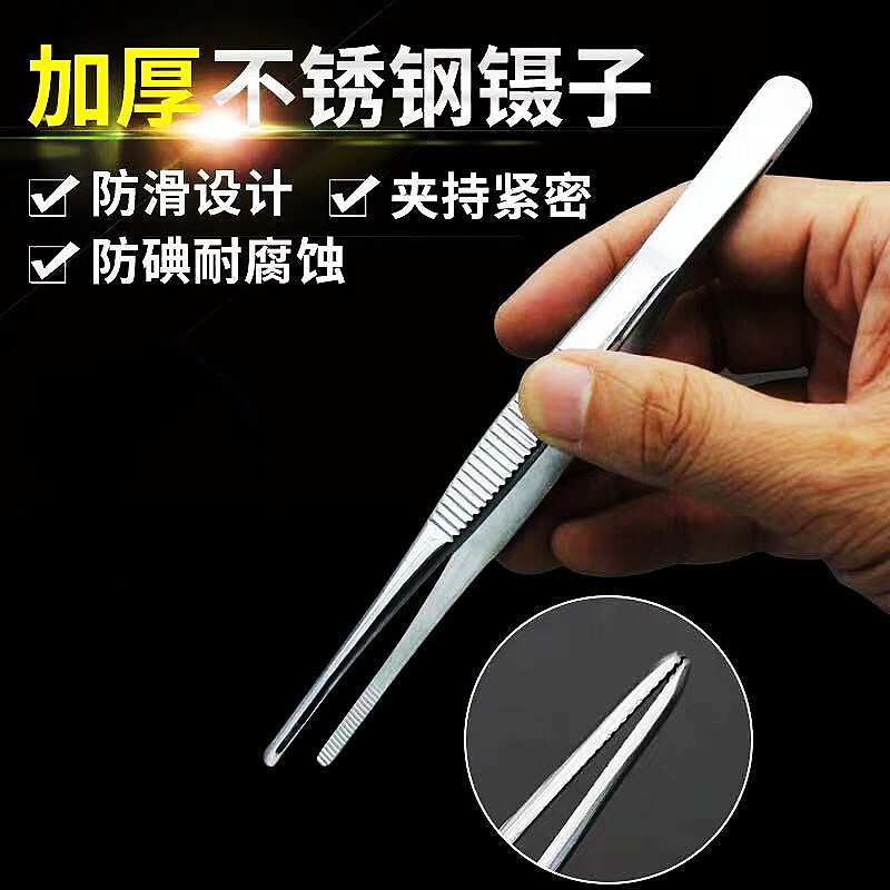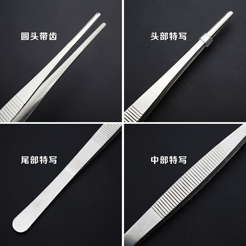 淘宝不锈钢圆头镊子带齿直弯头夹子手持防滑加长拔毛加厚加硬敷料组织