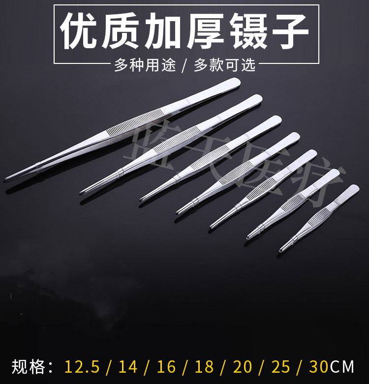 淘宝不锈钢镊子圆头带齿敷料镊子加厚加硬12.5/14/16/18/20/25/30CM