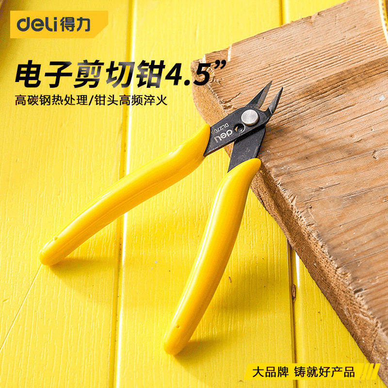 淘宝得力4.5寸电子剪切钳扎带剪刀剪毛边尖嘴剪水口钳迷你斜口钳省力