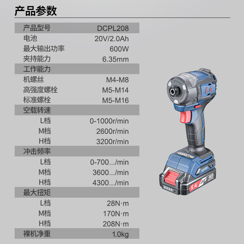淘宝东成20V充电式冲击起子机无刷锂电手电钻电动螺丝刀DCPL198/208