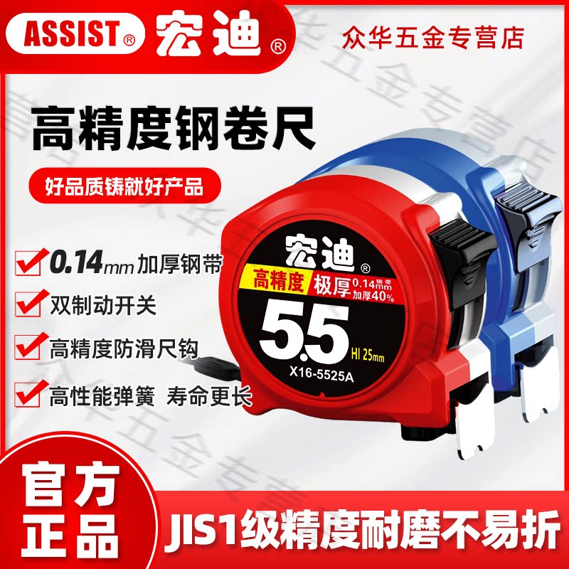 淘ASSIST宏迪钢卷尺公制卷尺加厚尺带高精度抗摔耐磨尺子5.5米3.5米