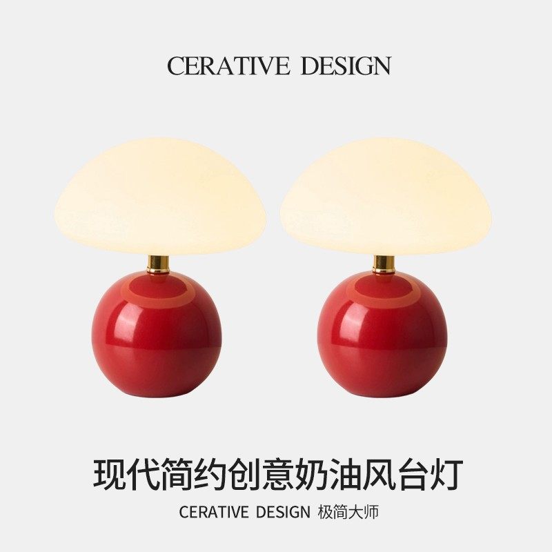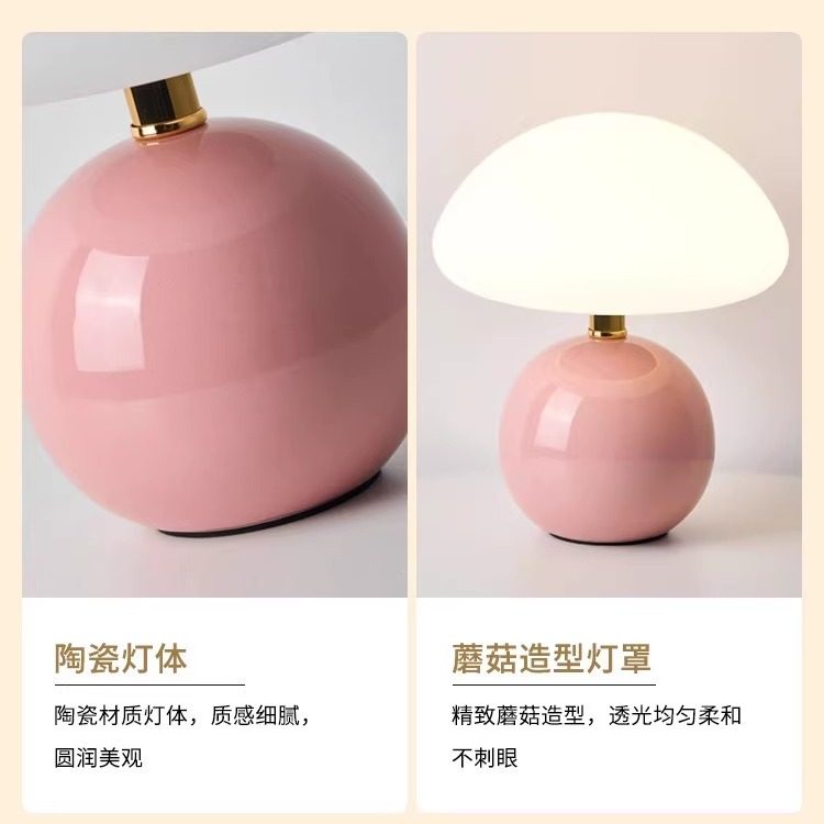 淘宝卧室送礼物装饰台灯小蘑菇台灯床头灯氛围灯书桌卧室小夜灯奶油风