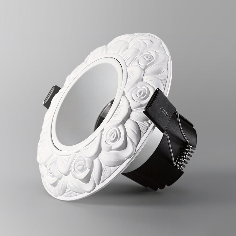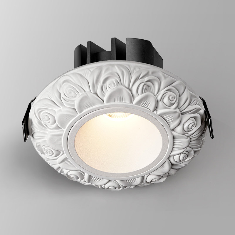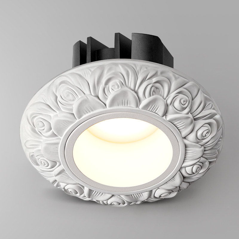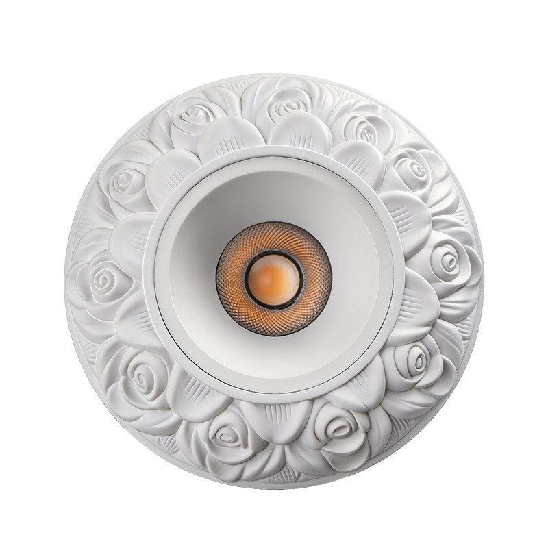 这款法式装饰筒灯融合中古风与欧式美学,采用精致石膏灯体,线条优雅流畅,完美契合复古与现代交融的室内空间。嵌入式设计适用于走廊、天花等区域,开孔尺寸宽大,光线分布均匀柔和,营造温馨典雅的氛围。射灯结构精准控光,突出墙面装饰或艺术品细节,兼具功能性与艺术感。内嵌安装方式简洁美观,不占用空间,适合层高有限的环境。无论是法式别墅、复古公寓还是欧式风格家居,这款灯具都能提升整体格调,是兼具实用与美学的理想照明选择。