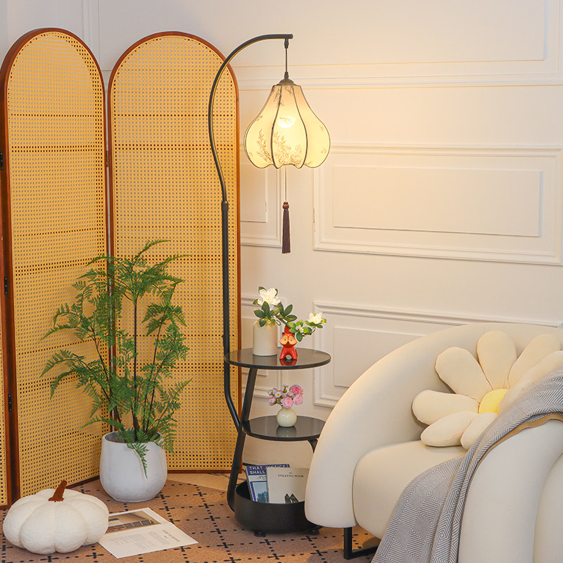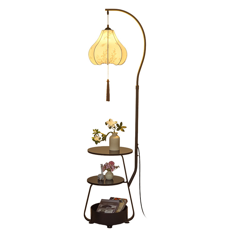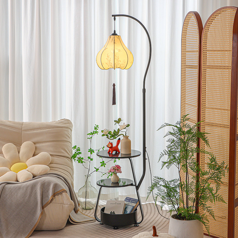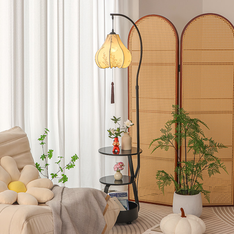 天猫宋式美学落地灯客厅沙发旁边中式复古置物架一体卧室氛围装饰台灯