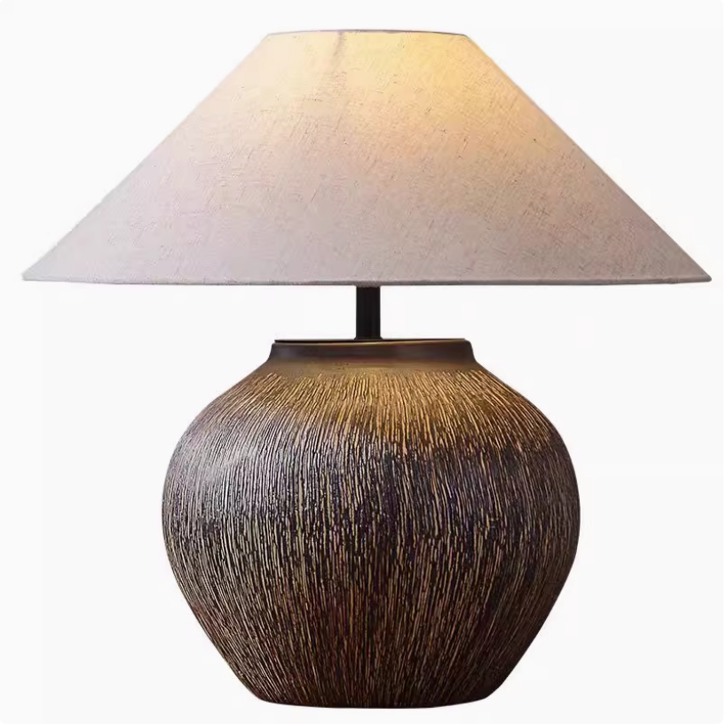 这款侘寂风陶瓷台灯,融合日式美学与手工陶艺精髓,以质朴、静谧的侘寂理念为设计核心。灯体采用天然陶土手工拉坯烧制,保留陶罐原始的肌理与不规则形态,呈现自然斑驳的釉色与哑光质感,尽显岁月沉淀之美。作为民宿、客厅或卧室的装饰灯具,它不仅提供柔和温馨的照明,更是一件独特的艺术摆件。搭配原木灯座或麻绳细节,营造出宁静、禅意的居住氛围。无论是作为设计师款家居点缀,还是日式风格空间的核心元素,这款陶瓷台灯都以极简之形传递深邃意境,让人在光影交错间感受生活本真之美。