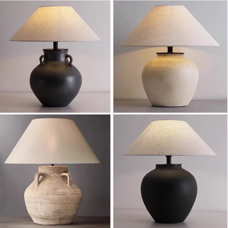 淘宝侘寂风陶瓷台灯民宿手工陶罐设计师摆件日式风客厅卧室装饰台灯具