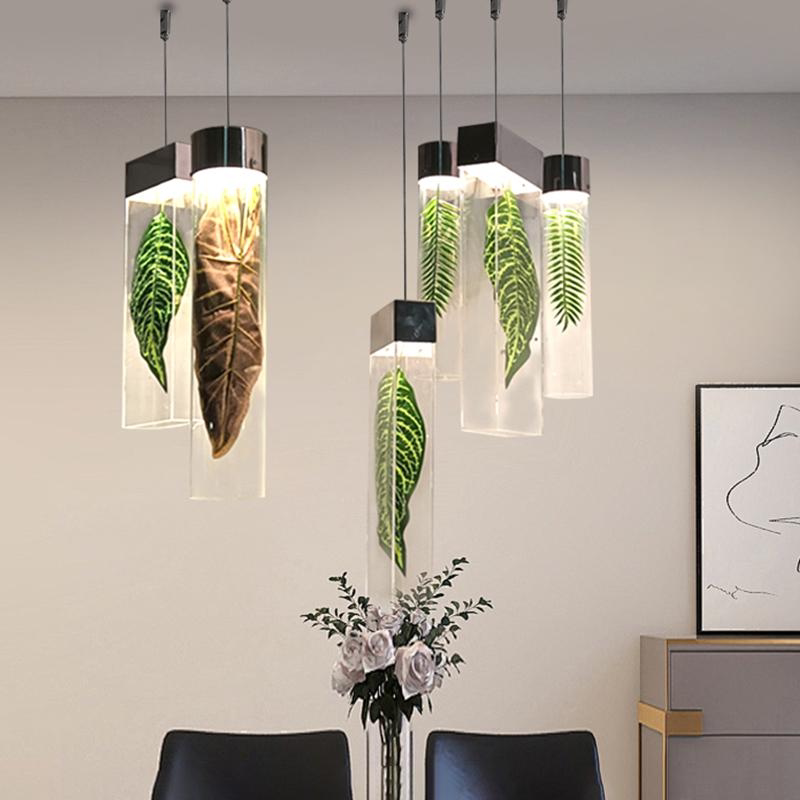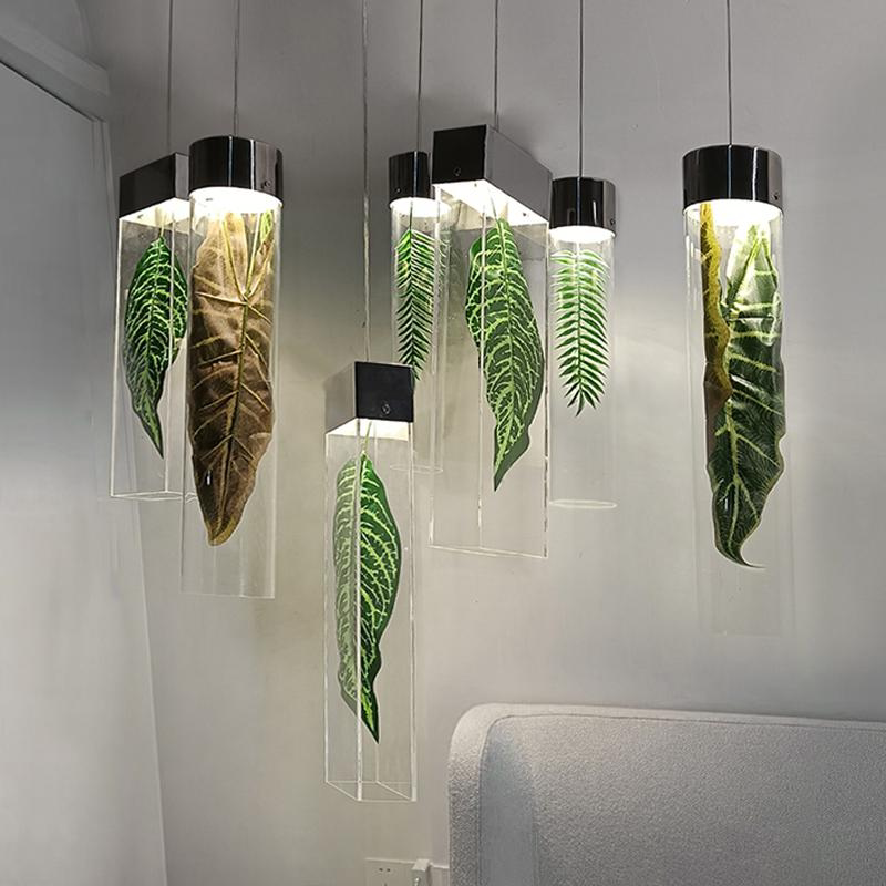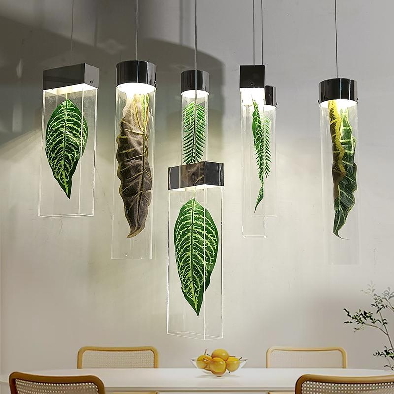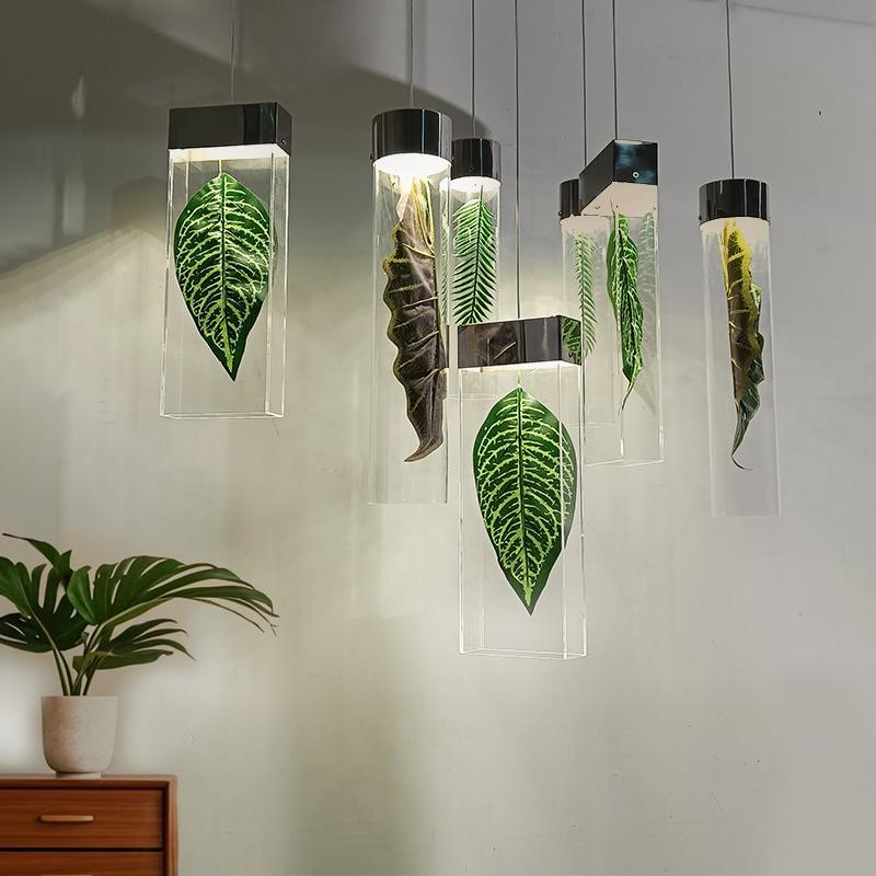淘宝酒店大堂售楼部吊灯亚克力绿色植物主题餐厅吊挂装饰工程定制灯具