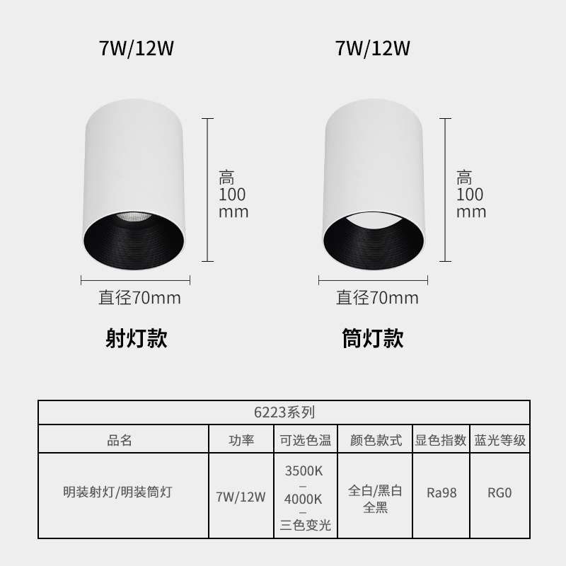 天猫led明装射灯客厅卧室过道玄关圆形吸顶式小山丘防眩明装筒灯6223