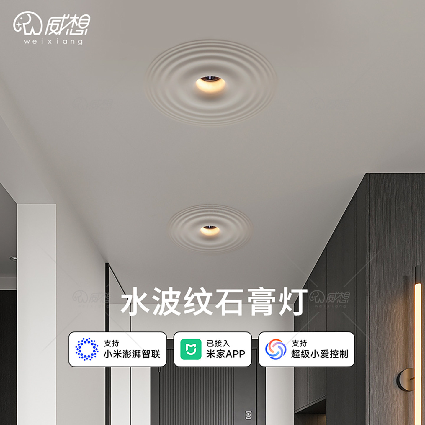 天猫嵌入式水波纹水滴石膏灯智能防眩客厅筒灯走廊门厅无边框预埋射灯