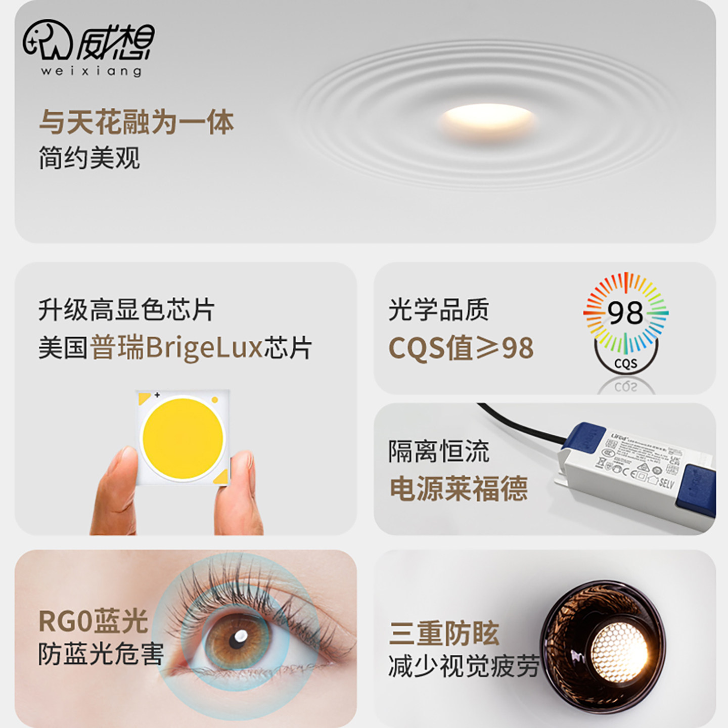 爱多辉防眩筒灯led全光谱护眼客厅无主灯家用高亮嵌入式cob天花灯
