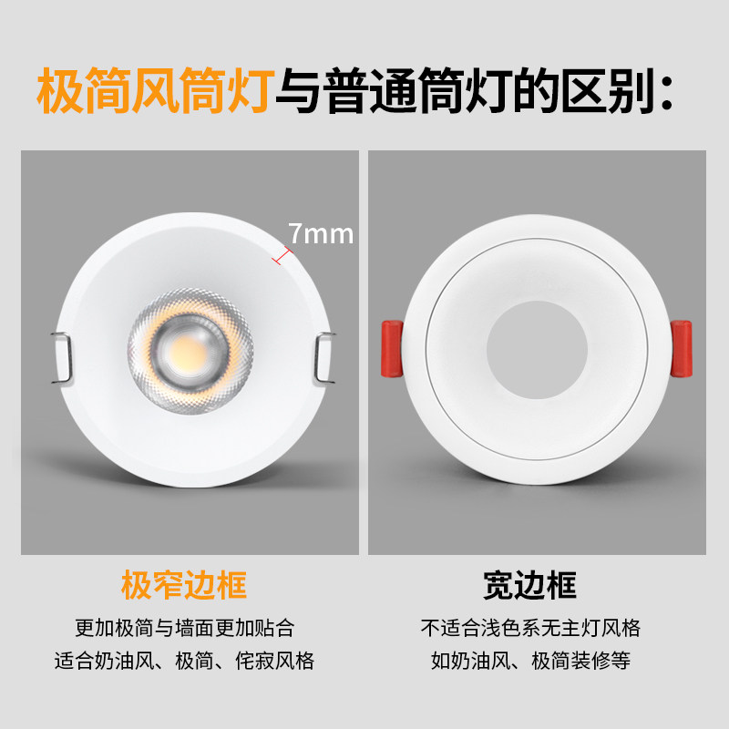 无边框非预埋led筒灯75mm嵌入式家用客厅无主灯照明深防眩cob射灯