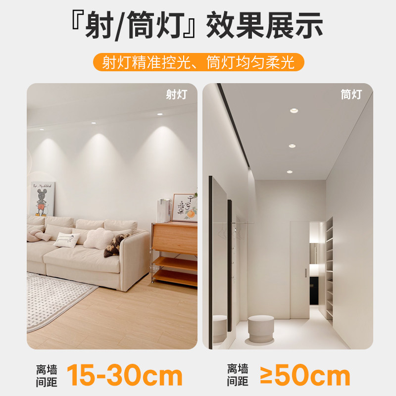 天欧普照明全光谱护眼筒灯洗墙嵌入式射灯家用防眩天花孔灯智慧光