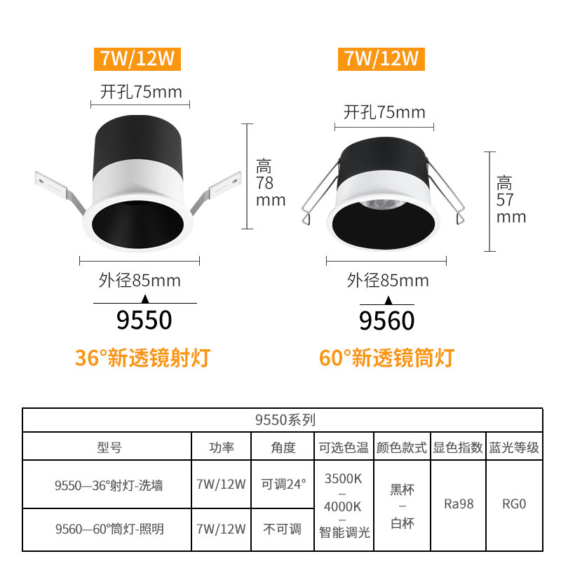 天极窄边框射灯山丘防眩LED嵌入式55开孔智能筒灯3500K客厅无主灯