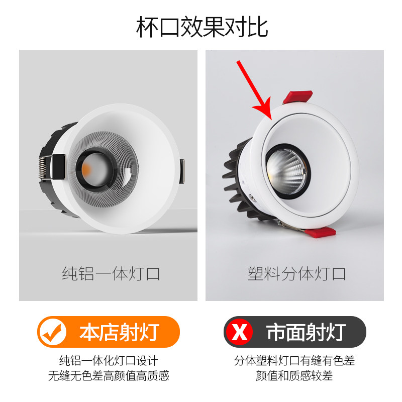 天无边框非预埋led筒灯75mm嵌入式家用客厅无主灯照明深防眩cob射灯