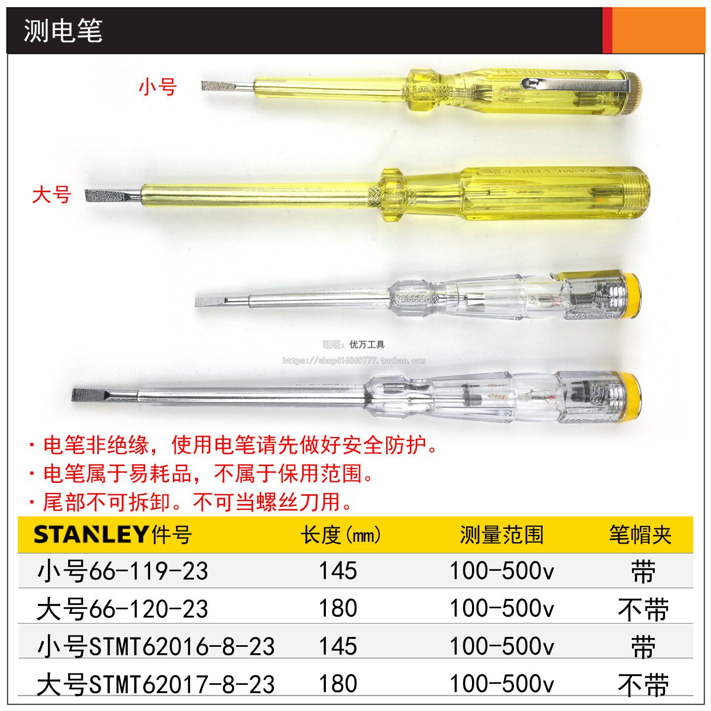 淘宝史丹利电笔试电笔测电笔电工专用数显验电笔工具66-119-23/66-133