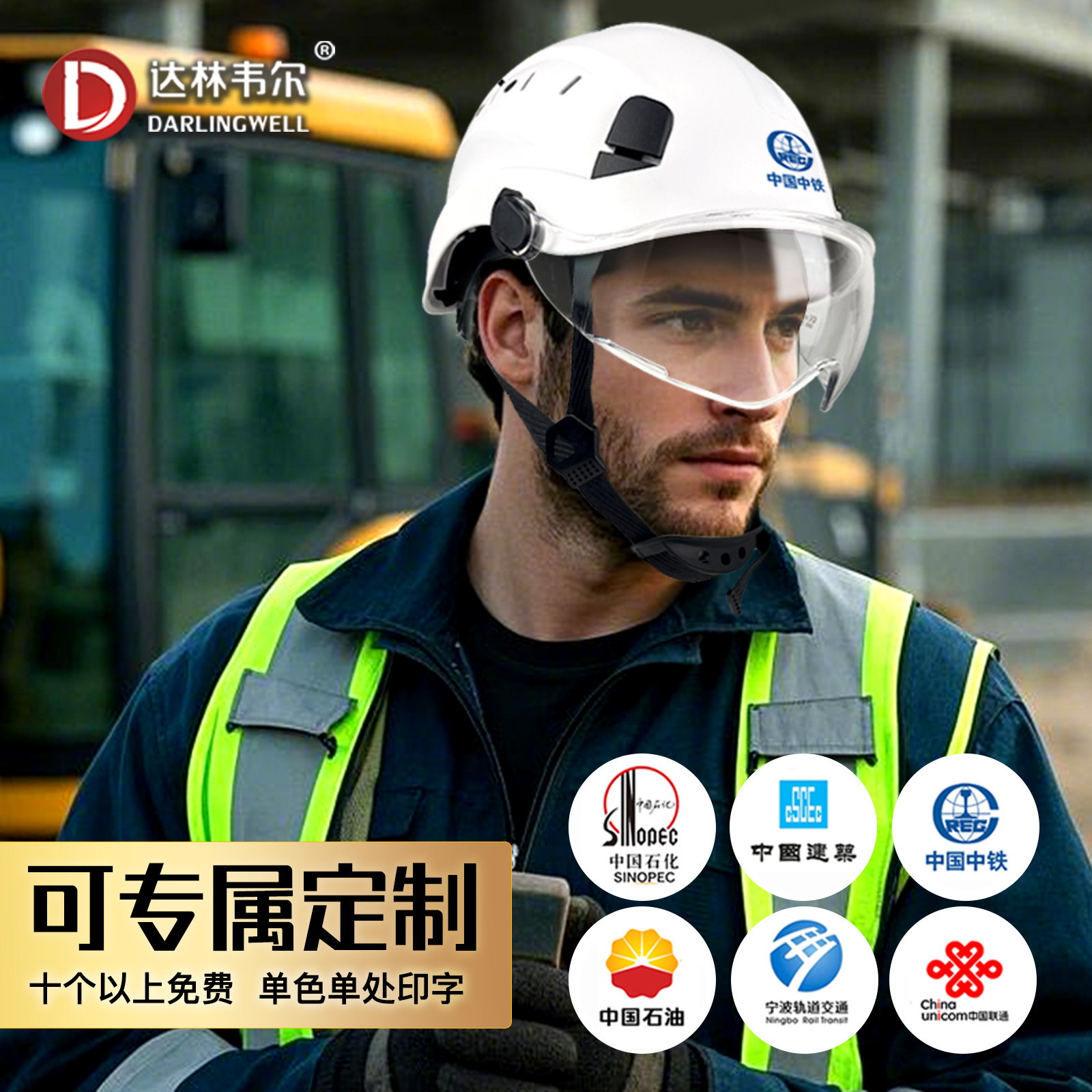 淘宝达林韦尔防砸工地安全帽带护目镜国标建筑安全盔透气劳保logo印字