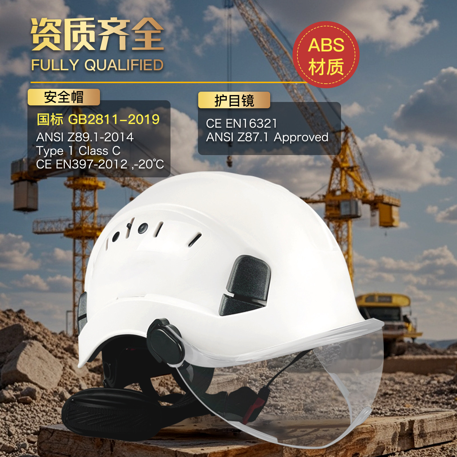 工地头盔安全帽3c认证国标施工玻璃钢abs新国标【定制logo印字】