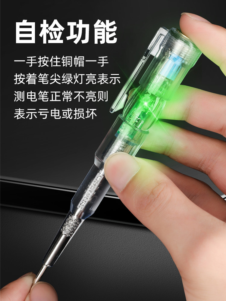 天得力工具测电笔电工专用电笔通断检测多功能智能家用高亮验电笔