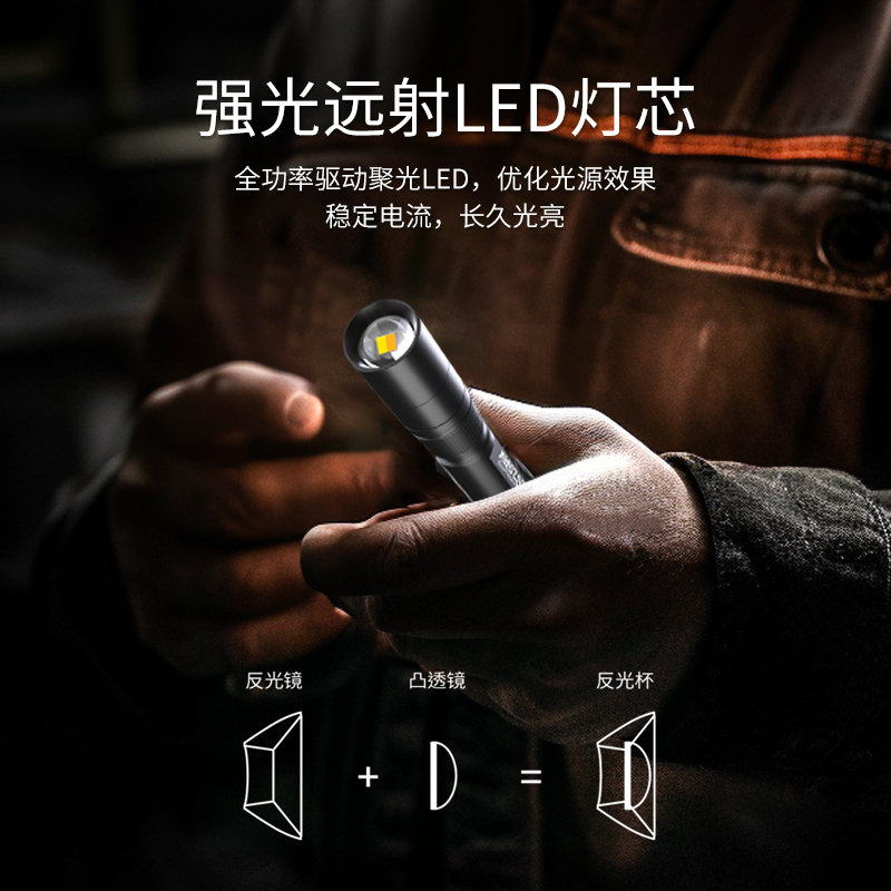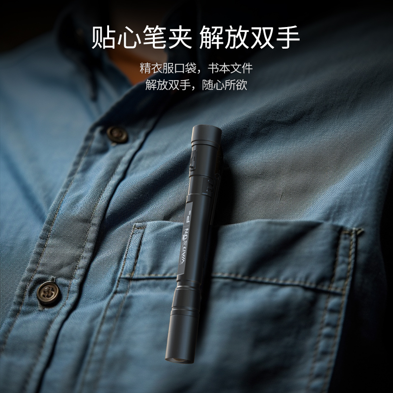 沃尔森强光变焦手电筒是一款集便携性与高性能于一体的笔式多功能照明工具。采用高亮度LED灯珠,支持远近光变焦调节,照明距离远、光线集中,适用于夜间行走、户外探险、家庭应急等多种场景。其小巧笔式设计,轻便易携,可轻松放入口袋或钥匙扣中。内置大容量可充电锂电池,超长续航,支持USB快充,告别频繁更换电池的烦恼。具备防水防震设计,耐用可靠。此外,尾部集成破窗锥与紧急切割器,危急时刻可自救脱险。无论是日常家用、户外旅行,还是应急备用,沃尔森手电筒都是安全出行的得力助手。