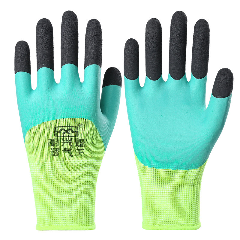 这款劳保耐磨工作手套专为男性工地作业设计,采用高品质橡胶材质,经浸胶工艺处理,表面覆有防滑颗粒,有效增强抓握力,防止工具滑脱。内层柔软舒适,贴合手型,长时间佩戴不易疲劳。外层胶皮坚韧耐磨,抗撕裂、防穿刺,适用于建筑、搬运、装卸等重体力劳动场景。同时具备一定的防水、防油性能,适应多种恶劣环境。指尖加厚处理,进一步提升耐用性与防护性。无论是砂石搬运、钢筋操作还是机械维修,这款防滑橡胶手套都能为双手提供可靠保护,是工地劳动者不可或缺的实用装备。