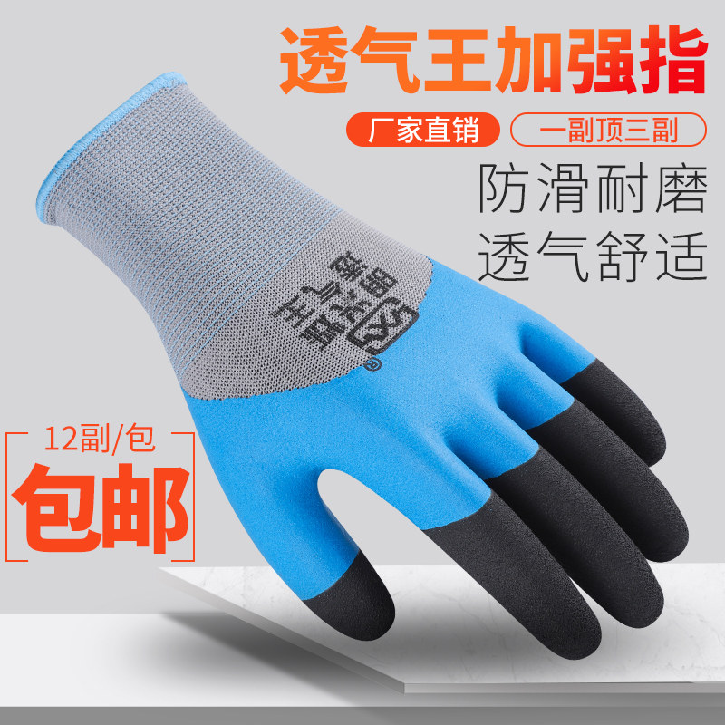 淘手套劳保耐磨工地干活用的工作劳动防滑男女透气橡胶带胶劳保手套