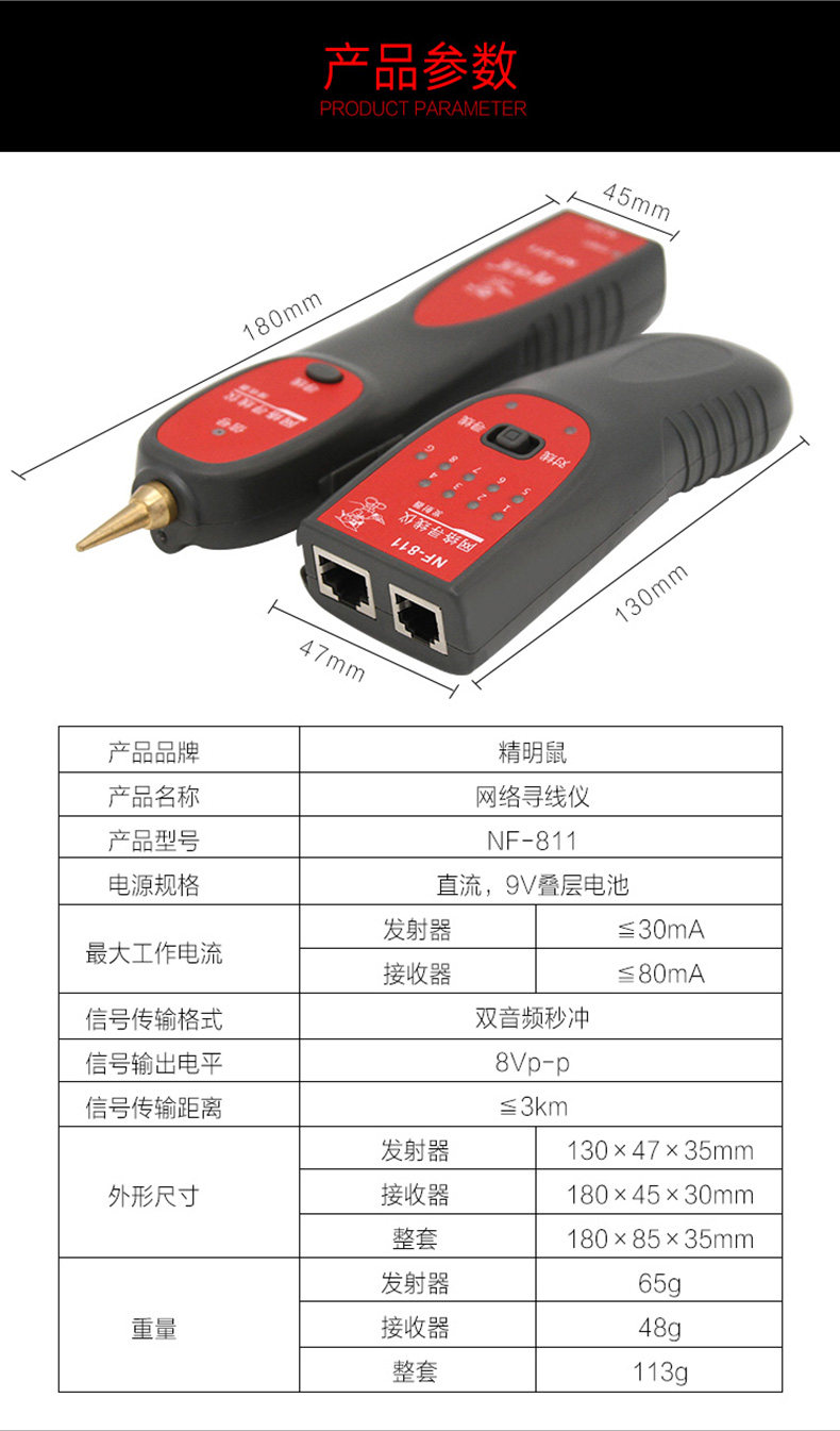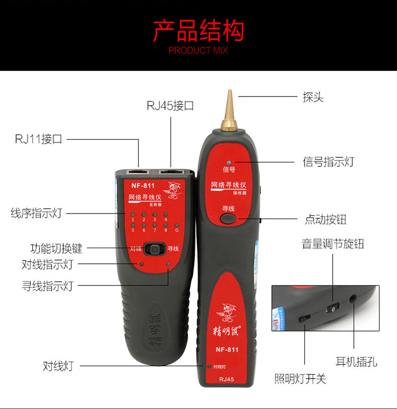 淘宝新款寻线器寻线仪精明鼠NF-811网络寻线仪多功能查线器巡线仪防烧