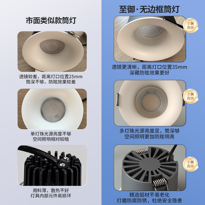 新款嵌入式弧面射灯无边深杯防眩筒灯家用天花灯客厅高显无缝筒灯
