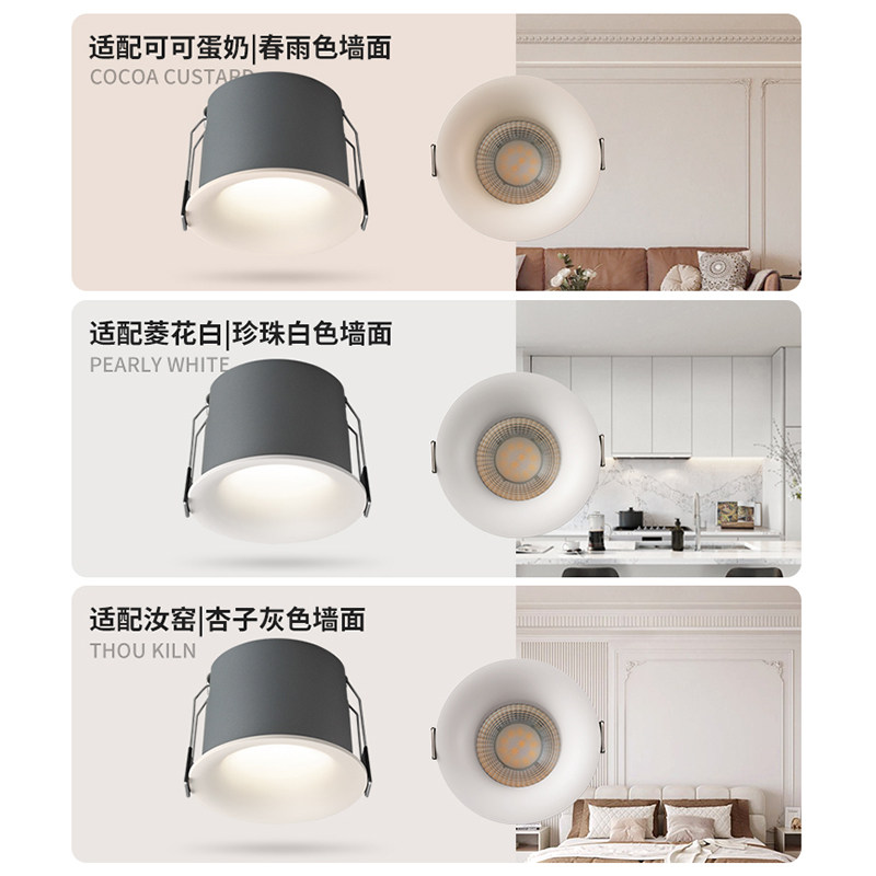 天猫至御奶油风嵌入式筒灯防眩客厅可可蛋奶无边框乳胶漆弧面仿石膏X9