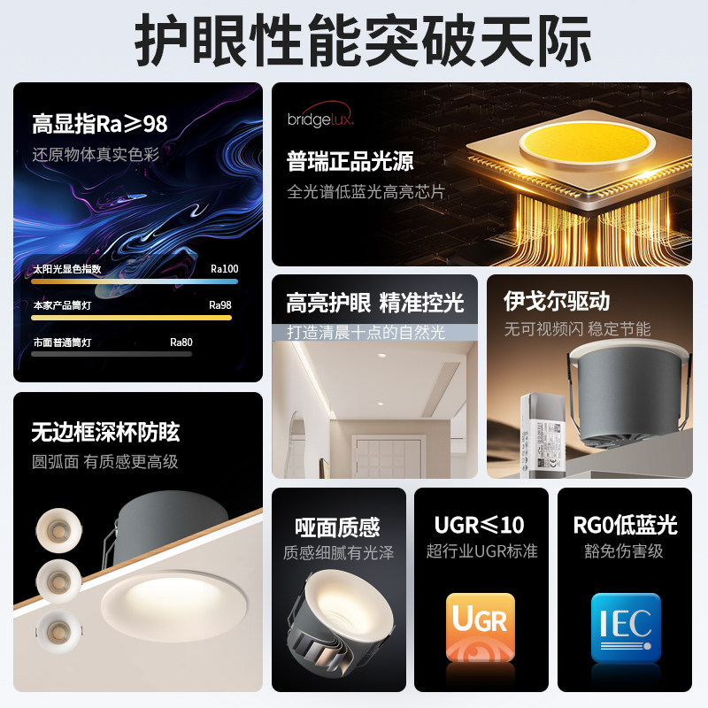 淘防眩护眼罗拉Pro筒灯60°嵌入式全光谱高显led家用简约客厅无主灯