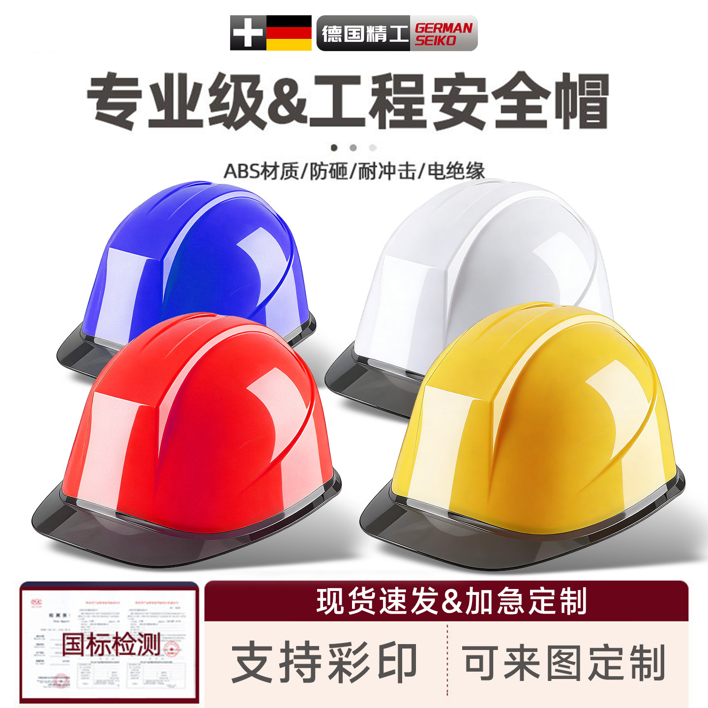 高强度安全帽工地ABS国标加厚头盔施工建筑工程电力领导定制LOGO