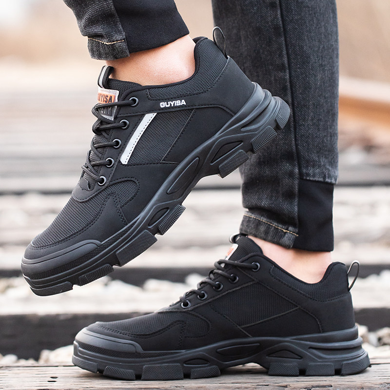 淘无钢头绝缘电工劳保鞋男真皮透气轻便休闲焊工安全工作鞋软牛筋底