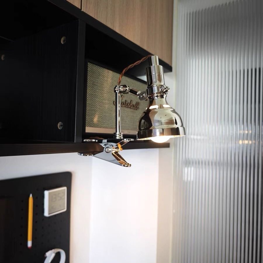 这款中古工业风摇臂夹子台灯,融合包豪斯极简美学与复古工业元素,采用优质金属材质打造,表面经做旧处理,质感沉稳。其可伸缩摇臂设计灵活实用,可自由调节照明角度与高度,适用于床头、书桌或工作台,满足阅读、办公与氛围照明需求。夹式底座稳固便捷,节省空间,兼具装饰性与功能性。整体线条硬朗利落,复古中透出现代感,是追求个性与品质的家居或办公空间理想之选,为空间增添一抹经典而优雅的工业艺术气息。