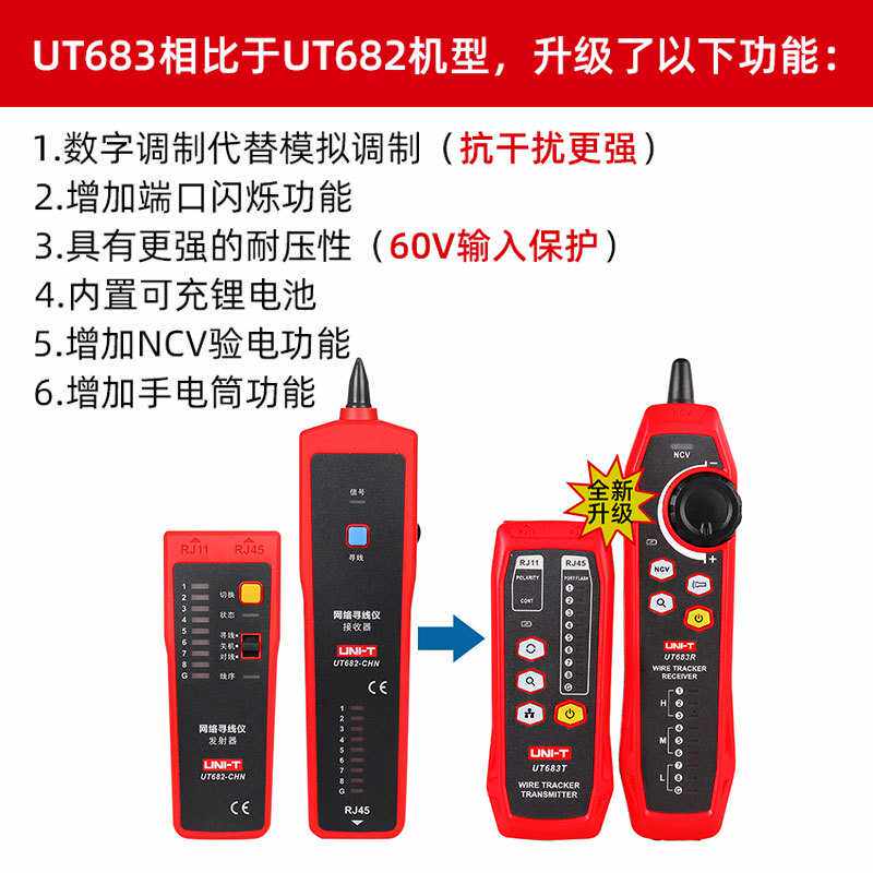 淘宝UNI-T优利德UT683KIT多功能数字寻线仪抗干扰带电巡线网线查线仪
