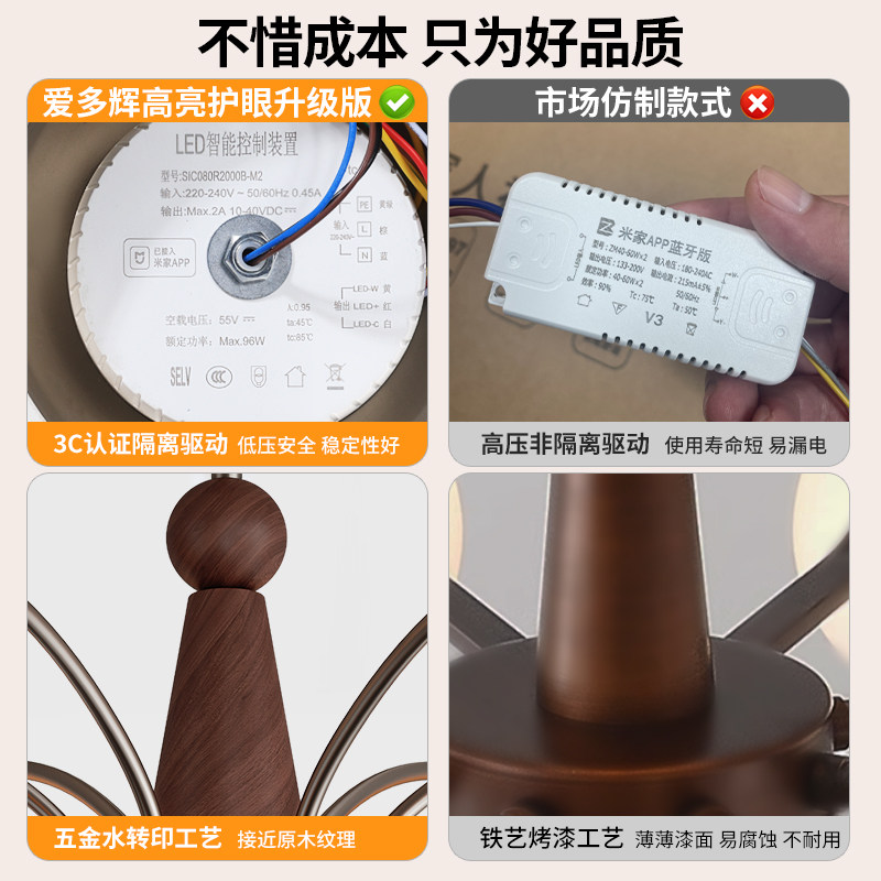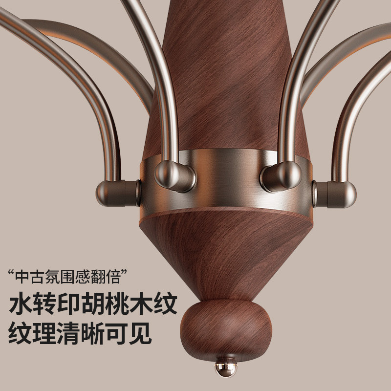 风扇灯中古风新中式胡桃木原木花朵卧室电扇一体灯餐厅隐形扇吊灯