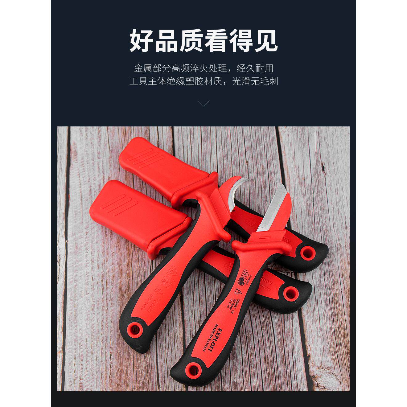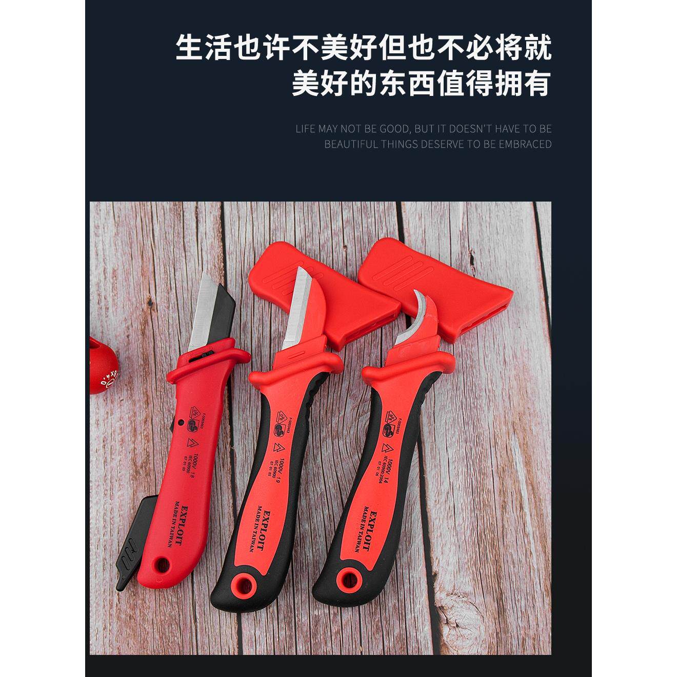 天猫开拓VDE认证台湾新能源电动汽车维修工具电工剥线刀绝缘电工刀