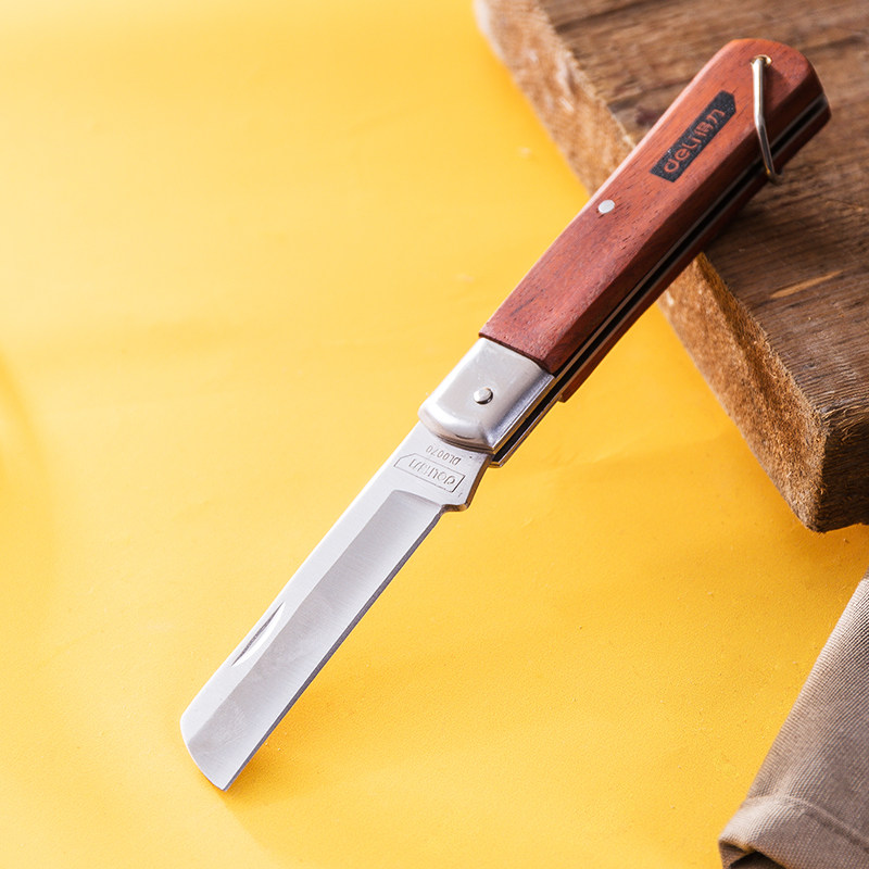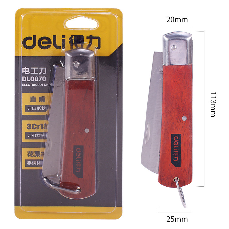 天猫得力电工刀专用拨线刀特种钢老式直刃工具刀多功能弯刃电缆剥皮刀