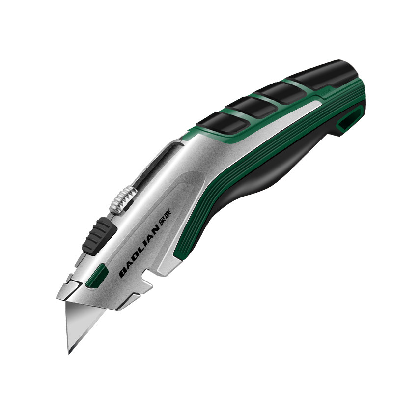 大号重型安全弹簧梯形伸缩全金属锌合金尖角电工多功能折叠美工刀