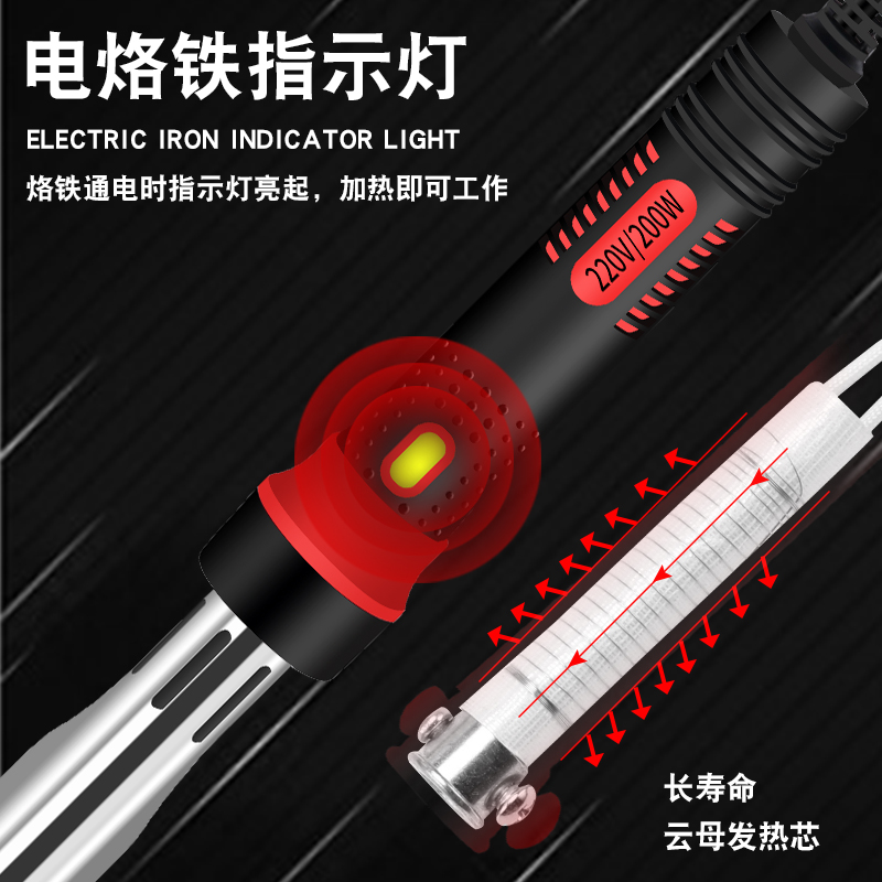 大功率电烙铁外热式电焊笔套装,适用于家庭维修、电子焊接及DIY创作。提供100W、150W、200W、300W多种功率选择,满足不同焊接需求,升温迅速、控温稳定。采用外热式设计,发热体包裹烙铁头,热效率高、寿命长。套装通常包含多种烙铁头(尖头、刀头、马蹄头等)、支架、海绵及辅助工具,使用便捷。手柄绝缘防烫,操作安全舒适。适用于焊接电路板、家电维修、金属连接等场景,是电子爱好者和维修人员的实用之选。大功率设计确保高效作业,兼顾性能与耐用性。