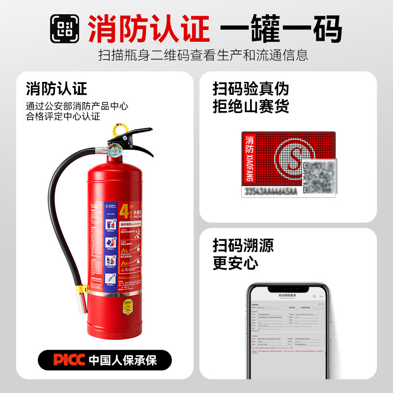 天猫2026新款水基灭火器商铺用4公斤手提式干粉国标认证消防器材家用c