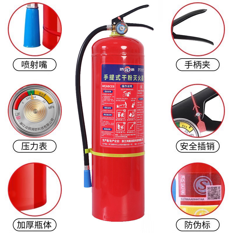 淘宝手提式干粉灭火器4公斤商铺用店用家用车载1/2/3/5/8/4kg消防器材