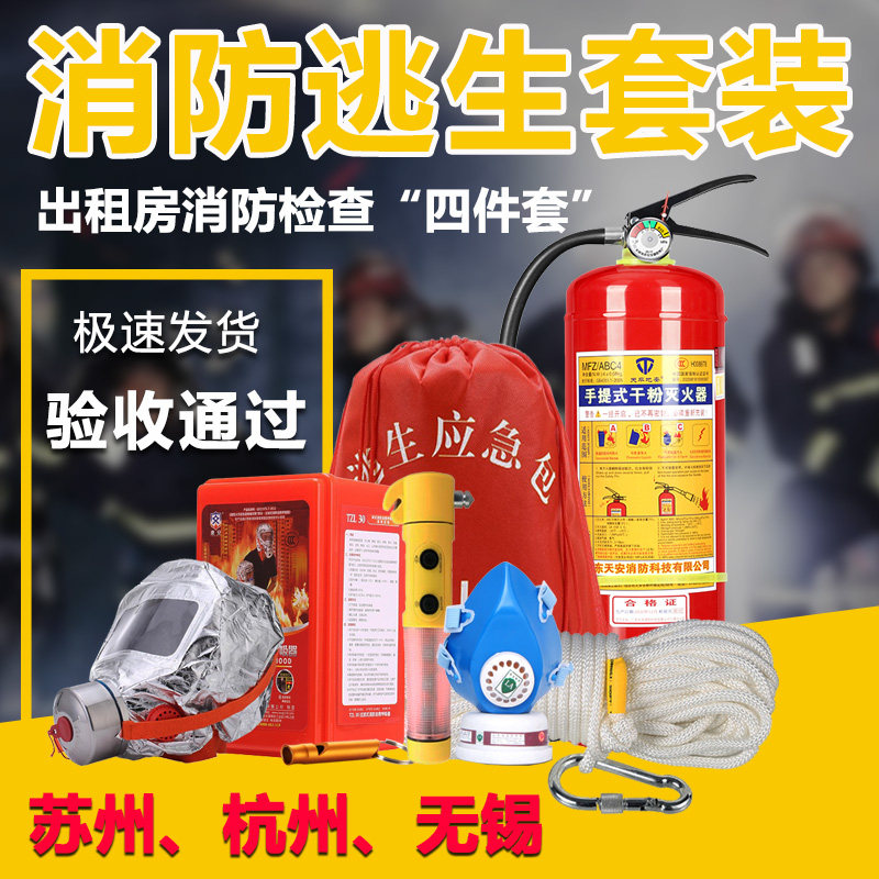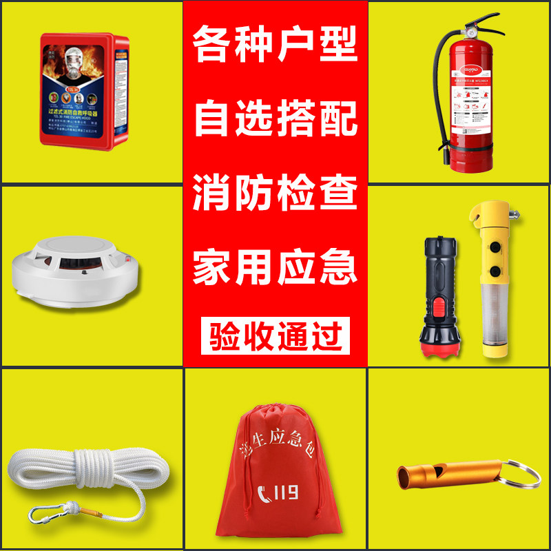 淘消防四件套逃生绳家用灭火器面罩应急包面具防毒出租房消防四件套