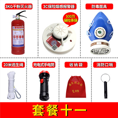 淘消防四件套逃生绳家用灭火器面罩应急包面具防毒出租房消防四件套
