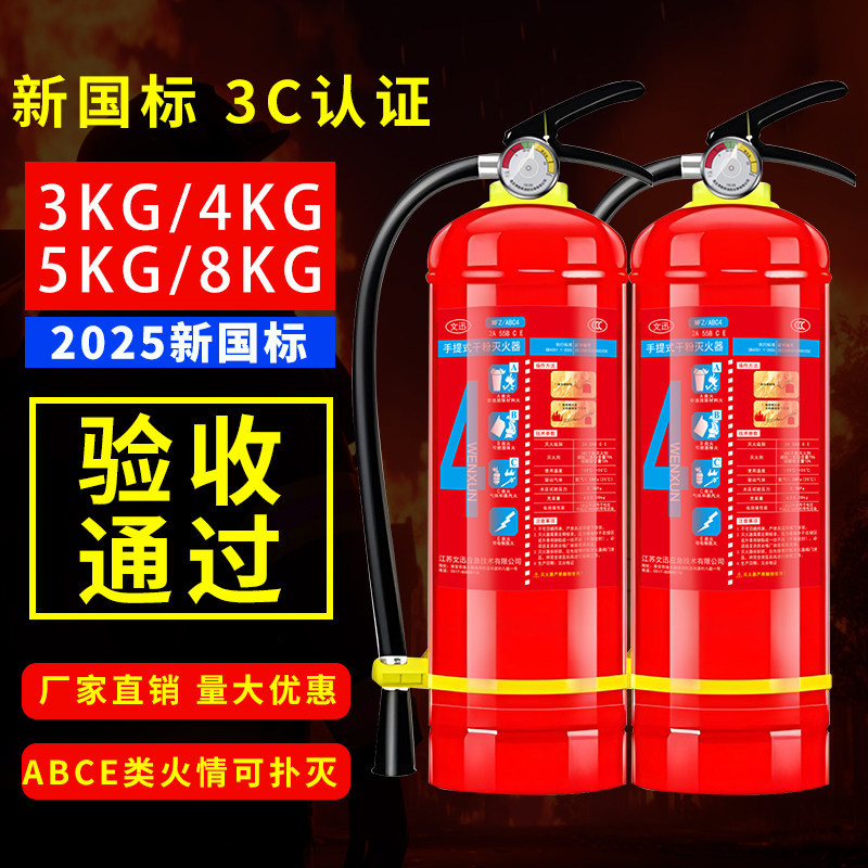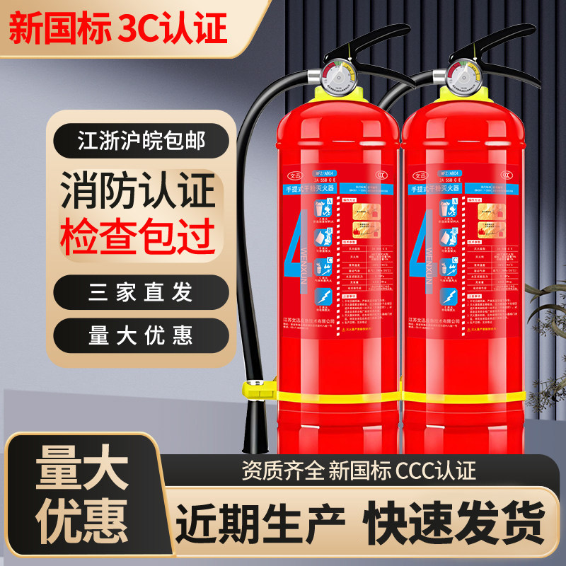 淘宝消防专用新国标手提干粉灭火器4公斤工厂仓库商铺用3C认证3/5/8kg