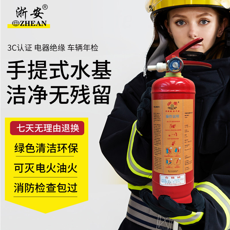 天猫浙安水基灭火器不锈钢家用车载环保工厂6kg水基3C国标灭火器