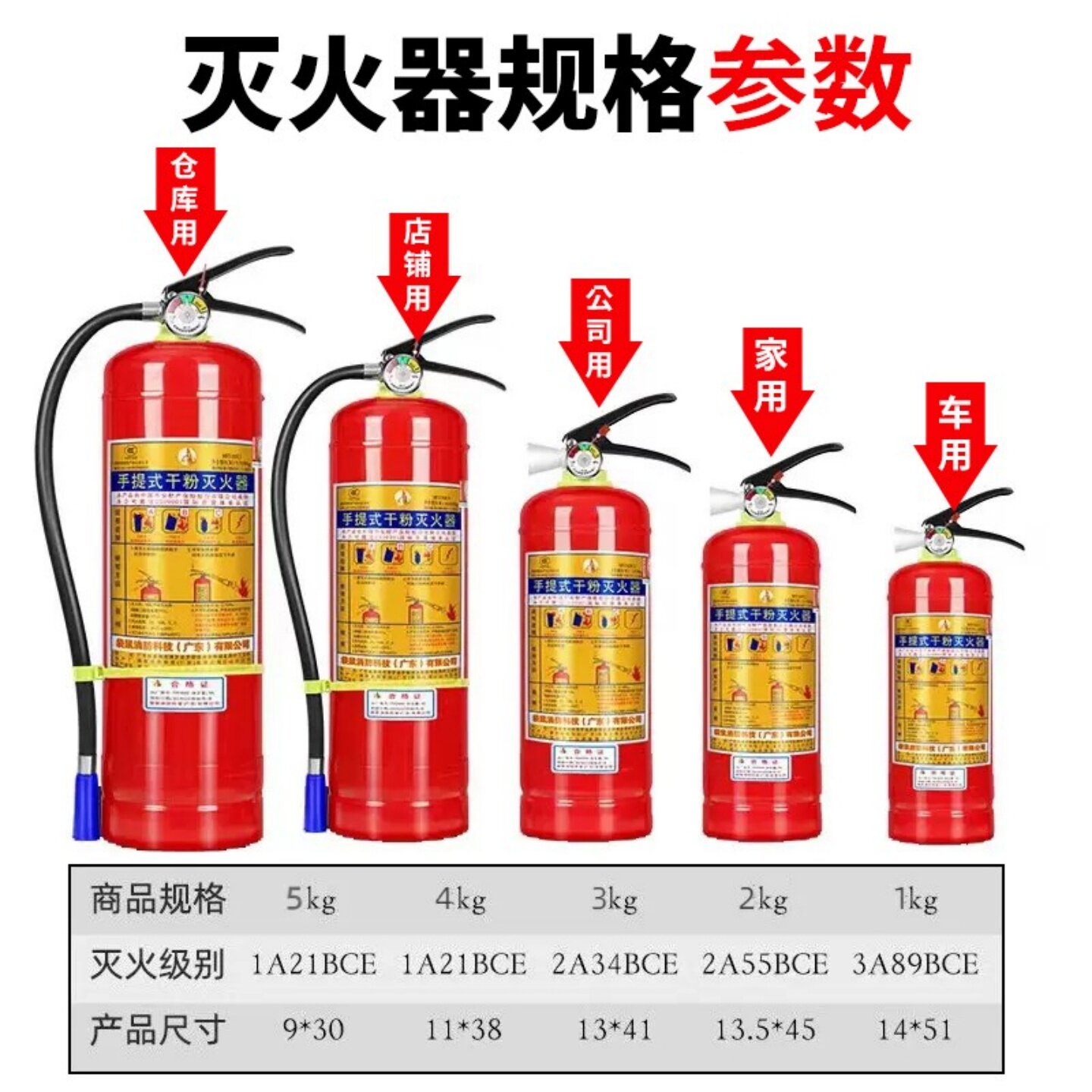 淘宝灭火器4公斤家用商铺仓库用1/2/3/5/8kg手提式干粉专用箱消防器材