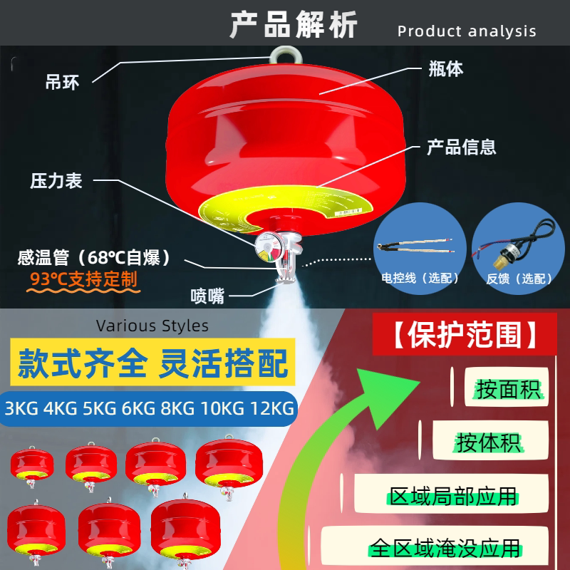 淘宝悬挂式超细干粉灭火装置悬挂式干粉灭火器温控电控消防自动灭火球