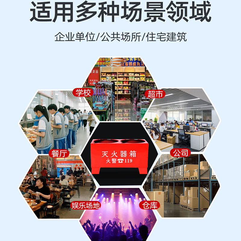 灭火器底座箱、灭火器固定架、双孔箱、半截箱及干粉灭火器箱是常见的消防器材,广泛应用于办公楼、商场、工厂等场所,用于安全存放和快速取用灭火器。其中,干粉灭火器箱专为存放干粉灭火器设计,具备良好的防尘、防潮和防撞性能,确保设备随时处于可用状态。双孔箱可同时容纳两具灭火器,提升配置效率;半截箱则适合空间受限区域,便于墙面安装。底座箱与固定架配合使用,可牢固固定灭火器,防止倾倒或误动。这些消防器材多采用优质冷轧钢板制作,表面经静电喷塑处理,耐腐蚀、美观耐用,符合国家标准,是保障消防安全的重要基础设施。