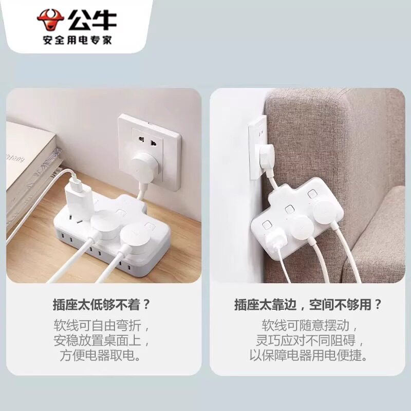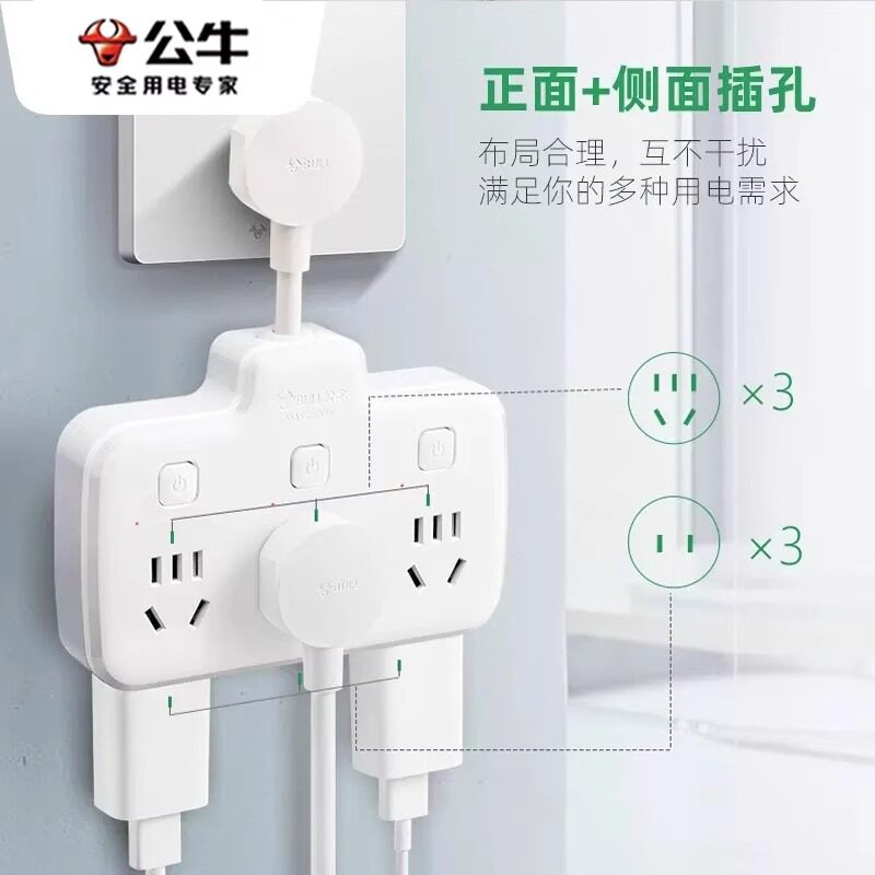 天猫公牛插座转换器多功能五孔插座拓展厨房卫生间阳台洗衣机插排插板