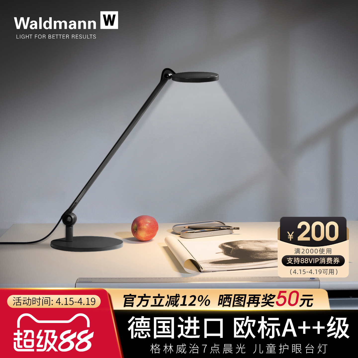 天猫德国进口Waldmann儿童护眼台灯 沃达迈小学生学习阅读专用书桌LED