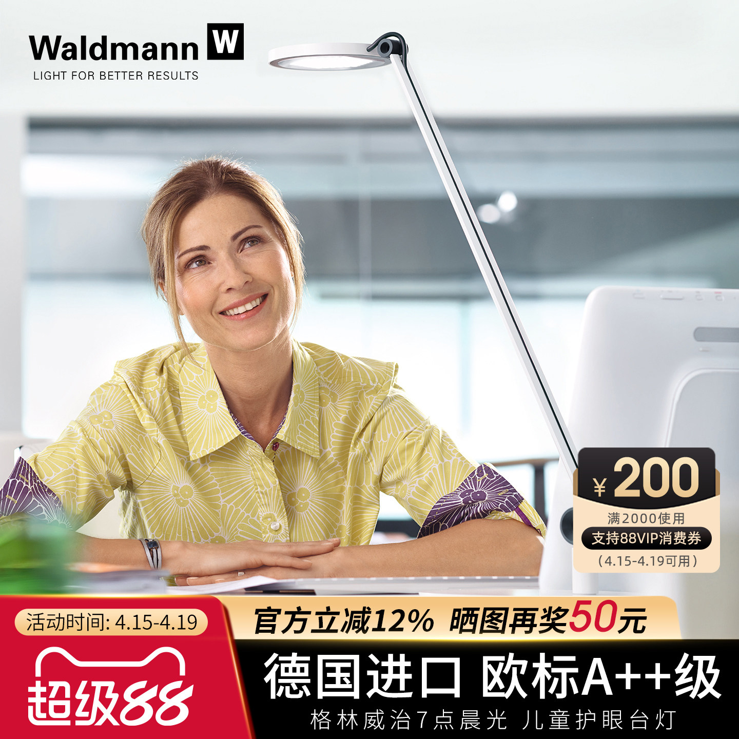 德国进口Waldmann儿童护眼台灯“沃达迈”专为小学生学习阅读设计,采用先进LED光源技术,提供无频闪、无蓝光危害的柔和光线,有效保护孩子视力。灯体符合人体工学设计,支持多角度调节,满足不同学习姿势需求。高显色指数(Ra≥95)真实还原书本色彩,提升阅读舒适度。节能环保,寿命长,底座稳固防滑,安全可靠。通过多项国际认证,品质值得信赖。沃达迈台灯不仅营造健康光环境,更陪伴孩子专注学习,是家长为孩子优选的护眼照明伙伴,助力健康成长与高效学习。